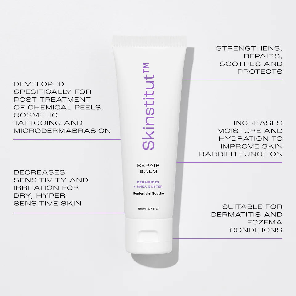 As an intensive moisturiser for severely dry or irritated skin. Gently apply one pea-sized amount of Repair Balm over face and neck. Not recommended for oily skin types or acne-affected skin. Please do not mix with Skinstitut Vitamin C 100%.